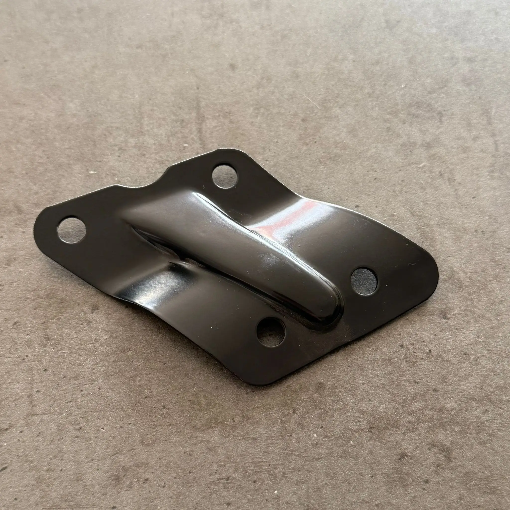 Držák koncovky výfuku pro motocykly Jawa. Držák je určen pro pravou stranu motocyklu. Díl je vyroben z plechu v České republice.