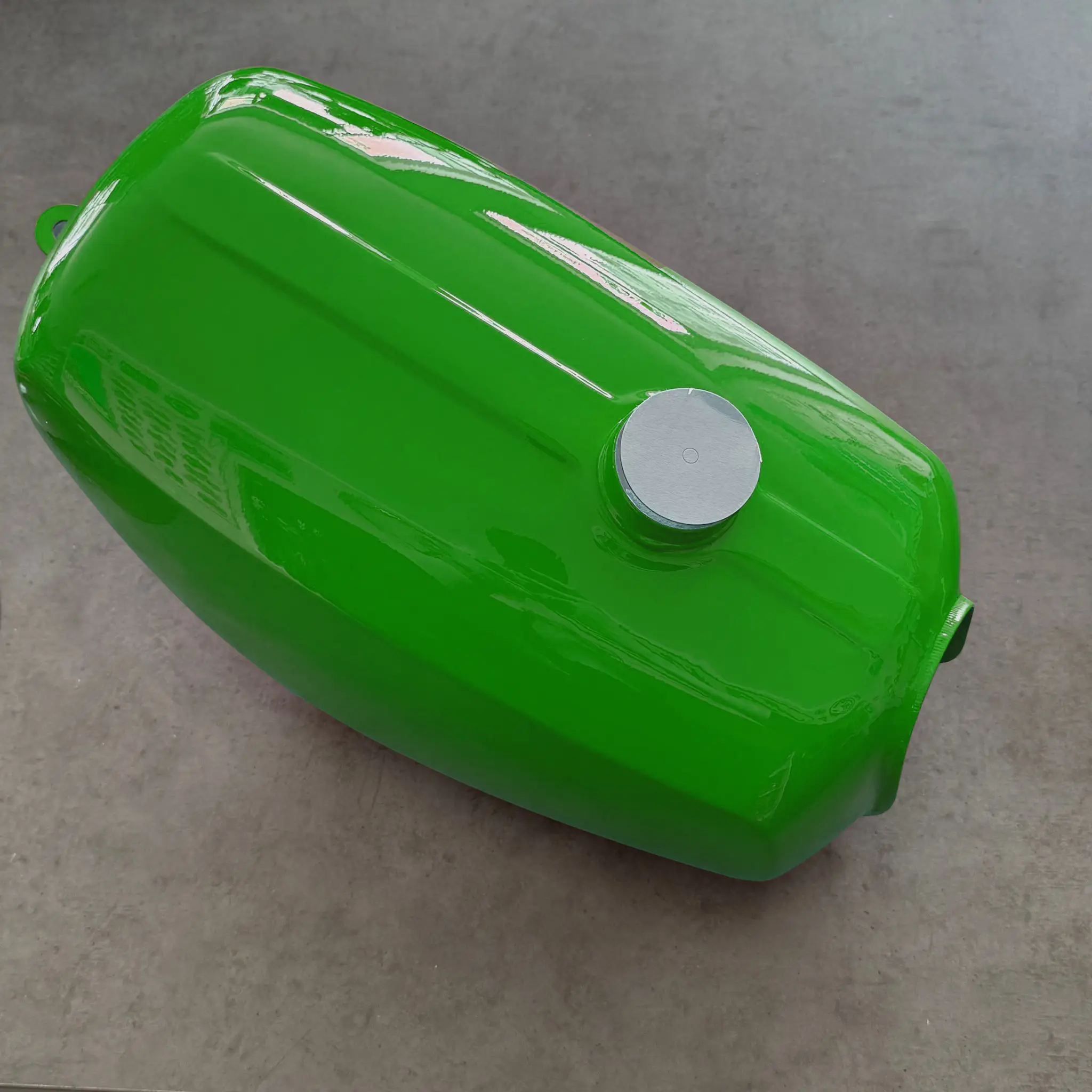 Nádrž paliva pro motocykly Simson. Povrchová úprava je provedena v zeleném laku. Chrání nádrž před korozí a dalšími vnějšími vlivy. Díl je vyroben na Tchaj-vanu.